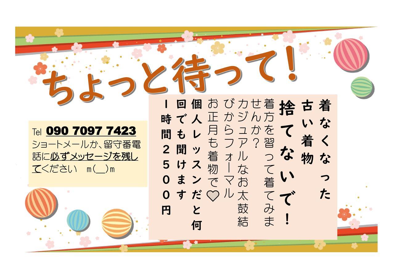 一般着付け、自装着付けの練習、和装婚フォトまで